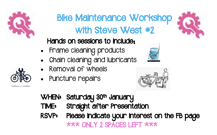 Next week Steve West will be running the second Bike Maintenance Workshop. See below for details.
