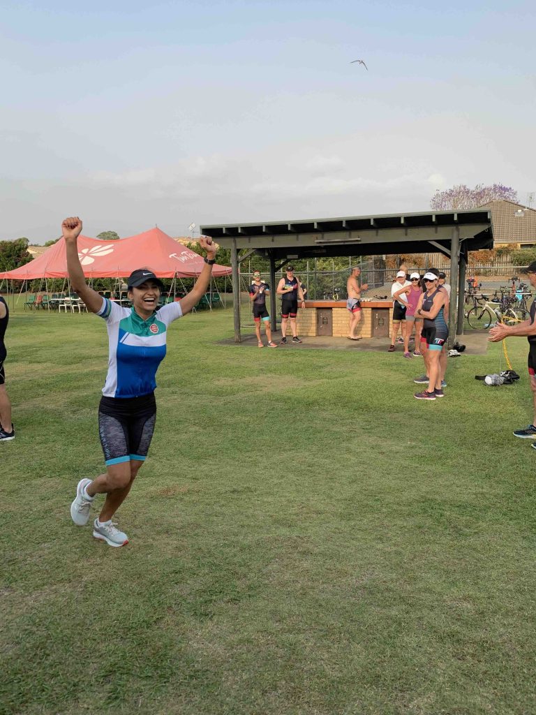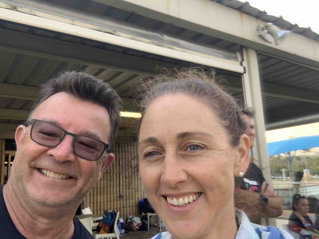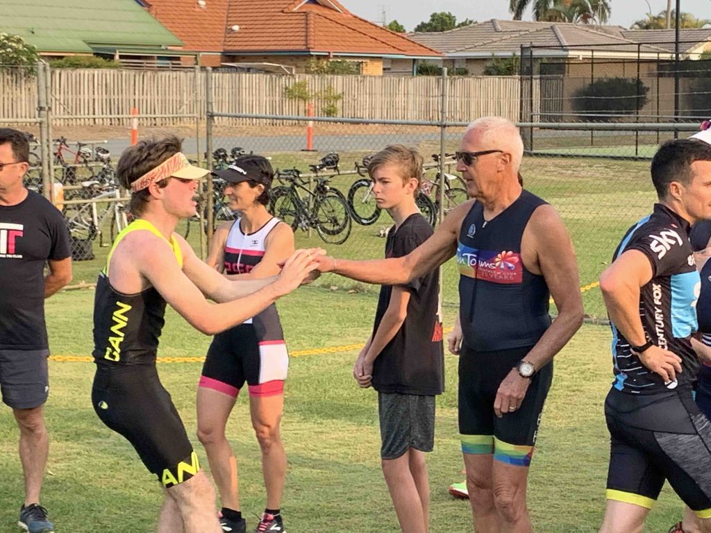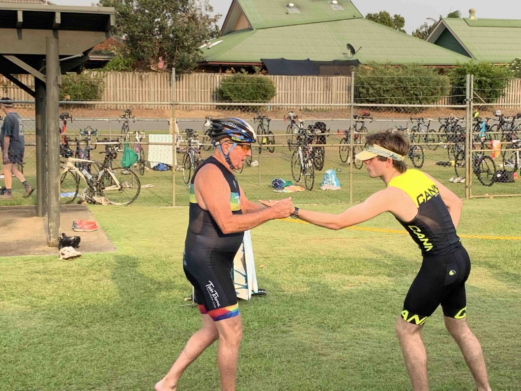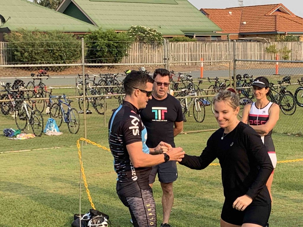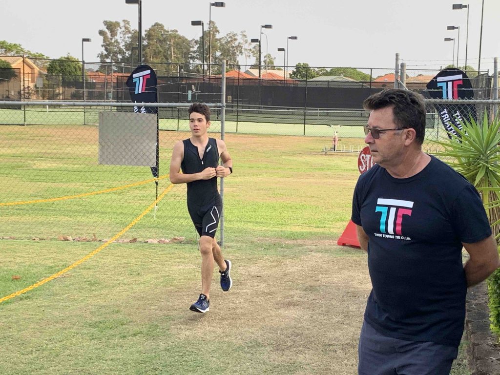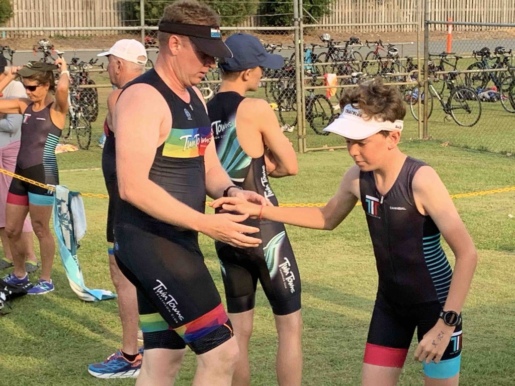 Under cool, smokey skies the Twinnies gang competed in our first ever Super Teams Event. With each team comprising of a range of abilities Kev, Dave and Stu calculated handicap times and a not long after 6 am, the first swimmers were in the pool. Swimmers completed 5, 5 and 4 laps respectively, followed by cyclists all completing 1 lap of Darlington. Lastly the first runner completed 1 lap of the Intermediate course, followed by the next two runners completing 2 laps along the golf course to the machinery shed and back. There were some exciting handovers of the very important rubber band and also a few questionable ones?! I think everyone will agree that it was a lot of fun and a great success. Thank you Kevie for all the effort you put in organising the event and of course to Dave, Stu and the other members of the Committee who all helped out to make the event a success.